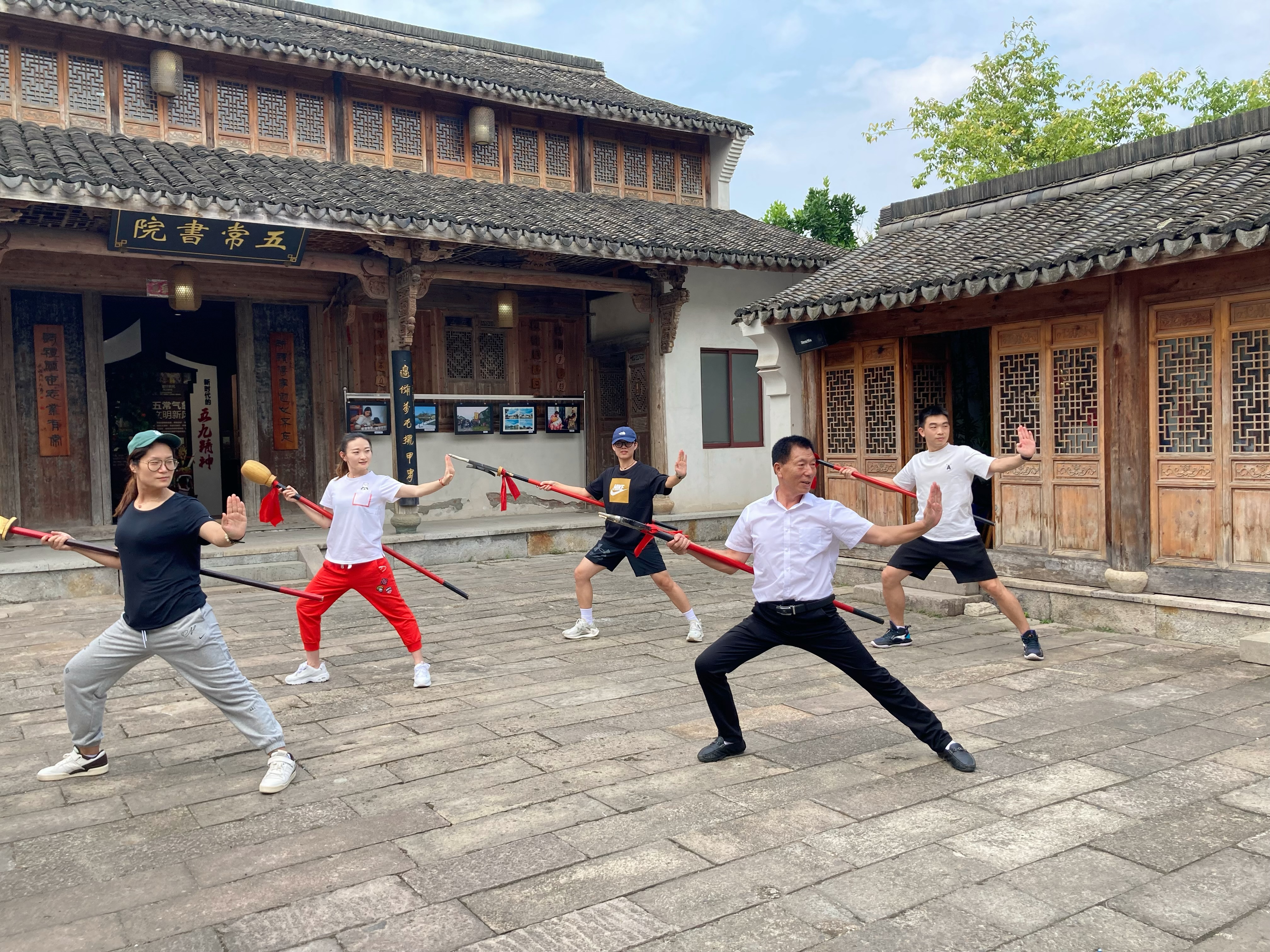 紧接着,青年团队一行在洪老师指导下,亲自学习、体验了“五常十八般武艺”套路,感受了非物质文化遗产的力量与魅力。