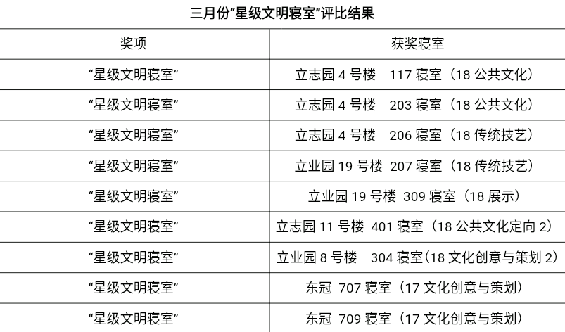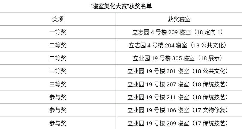 本次活动的开展,使各寝室在推广寝室文化,提高自身创新能力、合作能力等方面都有所提升。寝室成员也在合作中增进了感情,进一步融入了校园生活,展现了寝室的风采。