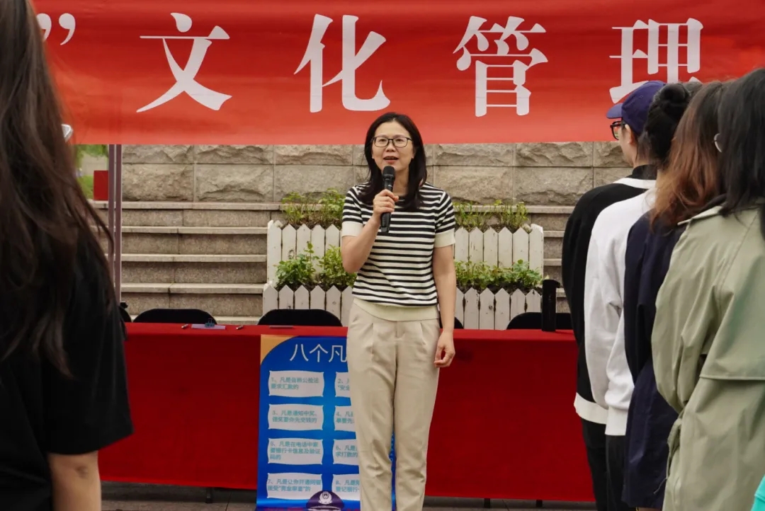 文化管理系班子出席活动,党总支专职副书记钟黎结合近期发生在校园的具体案例来讲述常见的诈骗手段,重申了防诈骗的“三不一要”、“六个一律”、“八个凡是”,提醒同学们一定要高度警惕,绝不落入诈骗陷阱。