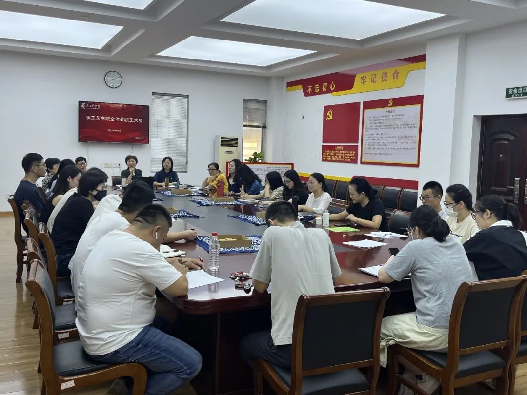 手工艺学院召开全体教职工大会,会议由党总支专职副书记王筱芽主持。