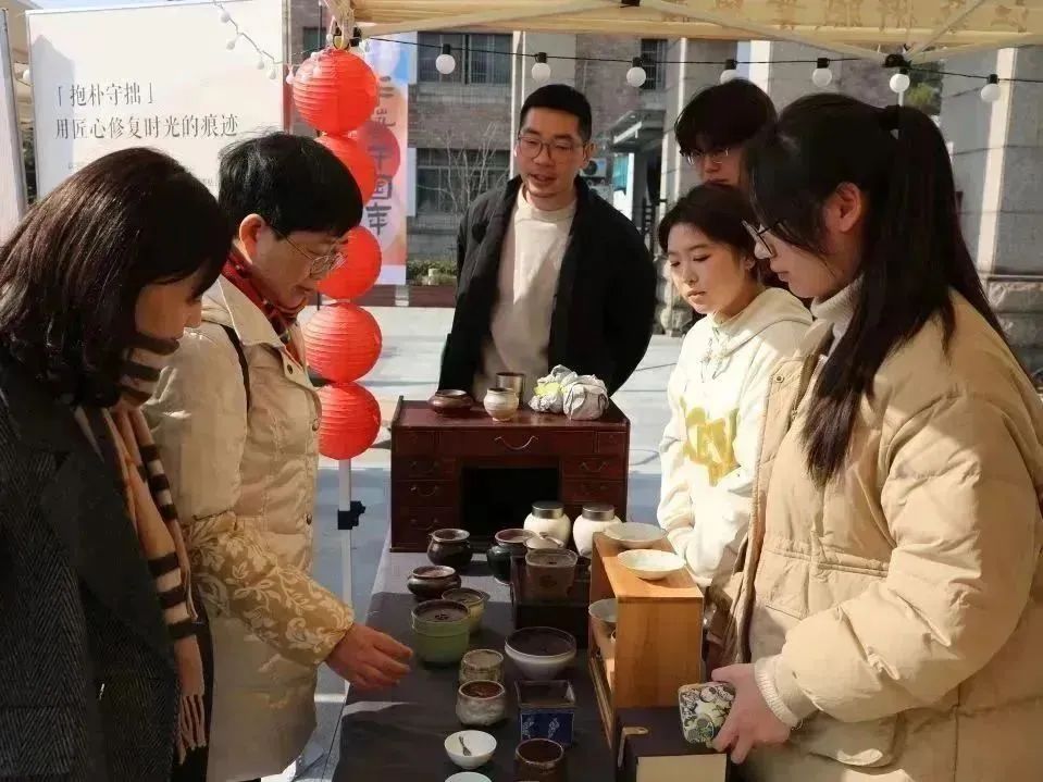 活动现场特邀自然造物、田博匠新、文博公司等非遗企业参与,摊位上的非遗手工艺品琳琅满目,引得不少老师、同学驻足观赏。