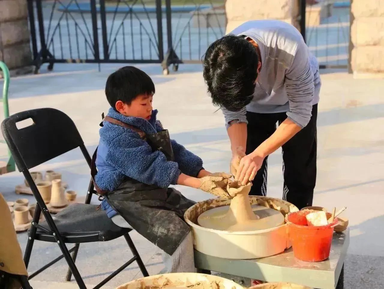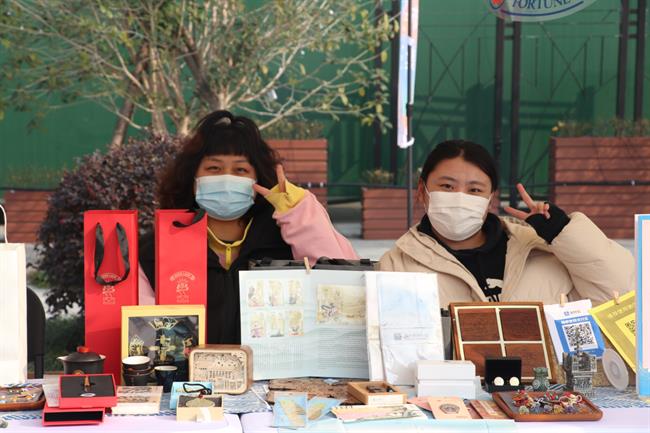 艺小匠们始终坚守岗位,扶起被风吹到的立牌、维持现场秩序、清理现场环境、介绍文创产品,他们用实际行动展现手工艺学子的热情风采。