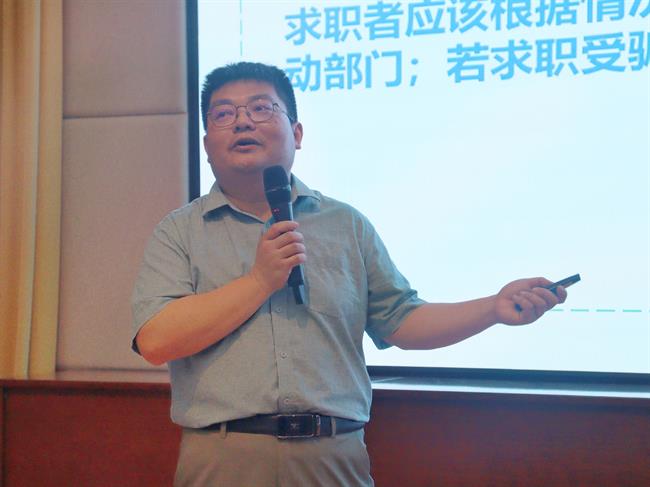 本次讲座邀请学工部(招生就业办)就业干事陈涛为到场学生进行就业指导。他从就业常见类型、档案去向、劳动合同签署、毕业生户口变迁、创业政策等方面为学生做了深刻的解读,帮助学生适应就业形势、转变就业观念、增强择业意识、提升就业能力。
