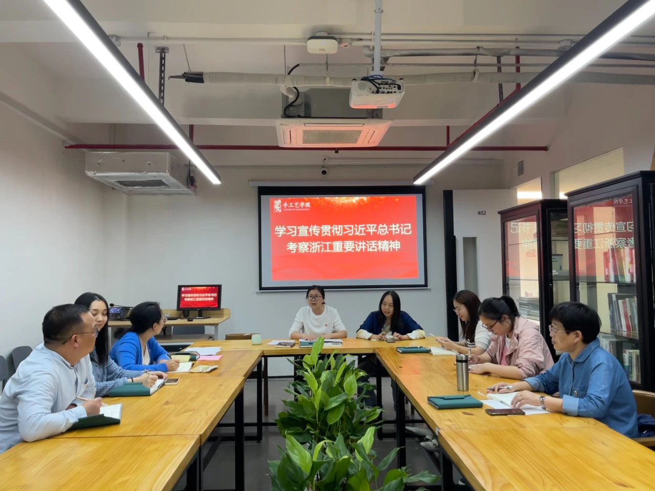 为推动学习贯彻习近平总书记考察浙江重要讲话精神走深走实,10月27日中午,党总支书记钟黎为全体党员上了专题党课,传达学习贯彻习近平总书记考察浙江重要讲话精神,并结合学院发展目标和培养方向等内容,引领党员们要在赓续历史文脉、加强非遗保护传承、推动优秀传统文化创造性转化和创新性发展上持续发力。