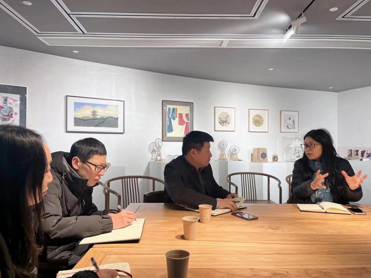 同时,党委委员、宣传部长傅文钢走访手工艺开展调研,对理论学习、新闻宣传等工作作了深入的了解与交流。