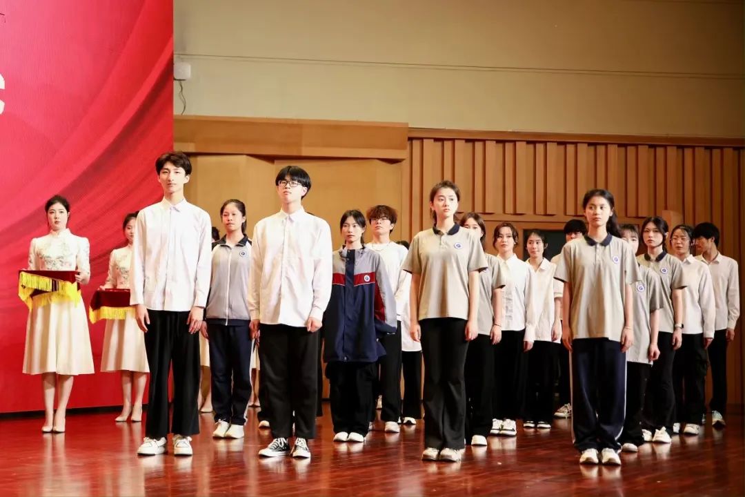 活动伊始,22文化创意与策划班曹瑞作为优秀团员代表领誓,23展示艺术设计班罗美玲和23文物修复与保护班李泓达作为手工艺学院新团员代表上台宣誓。
