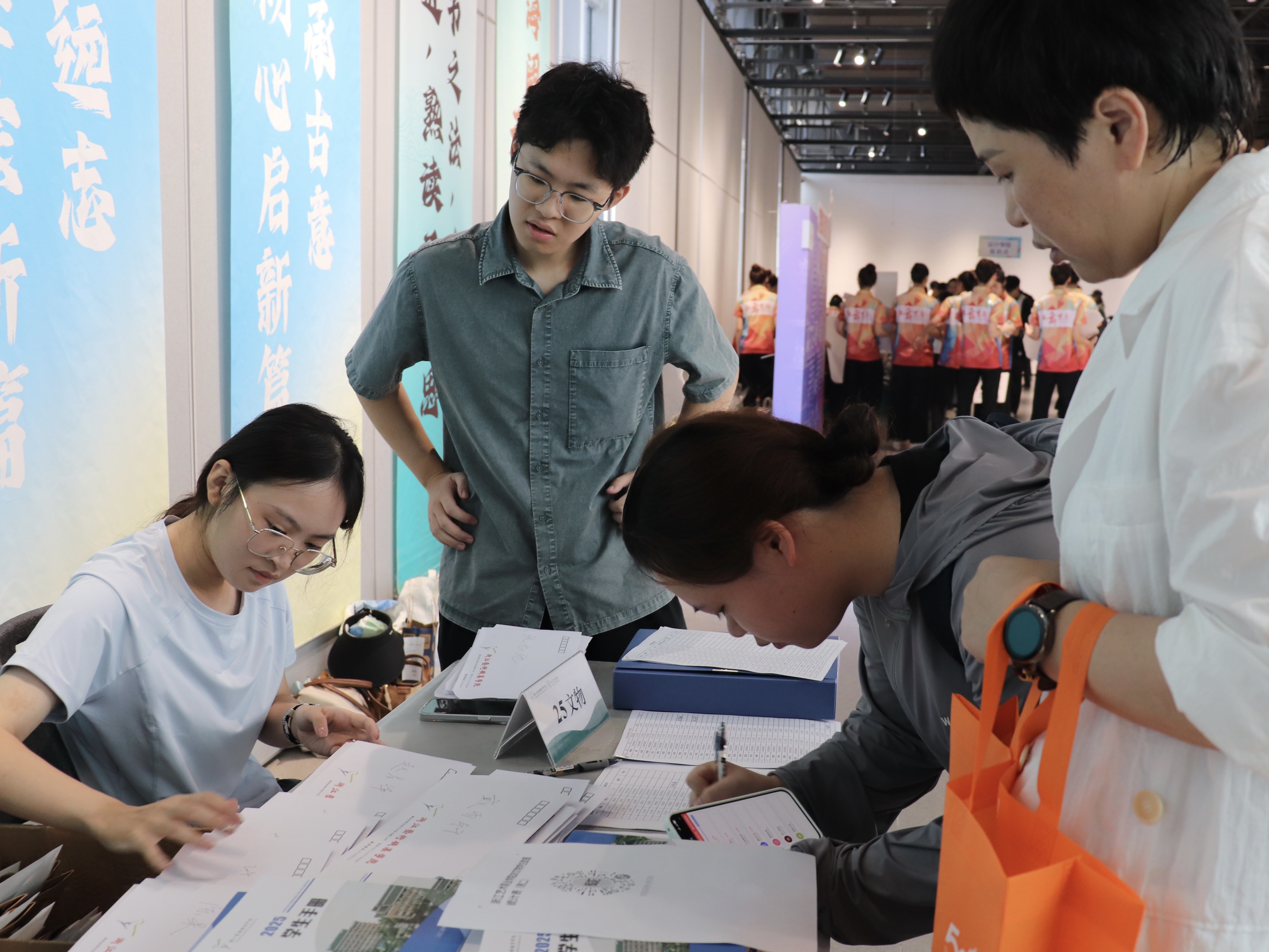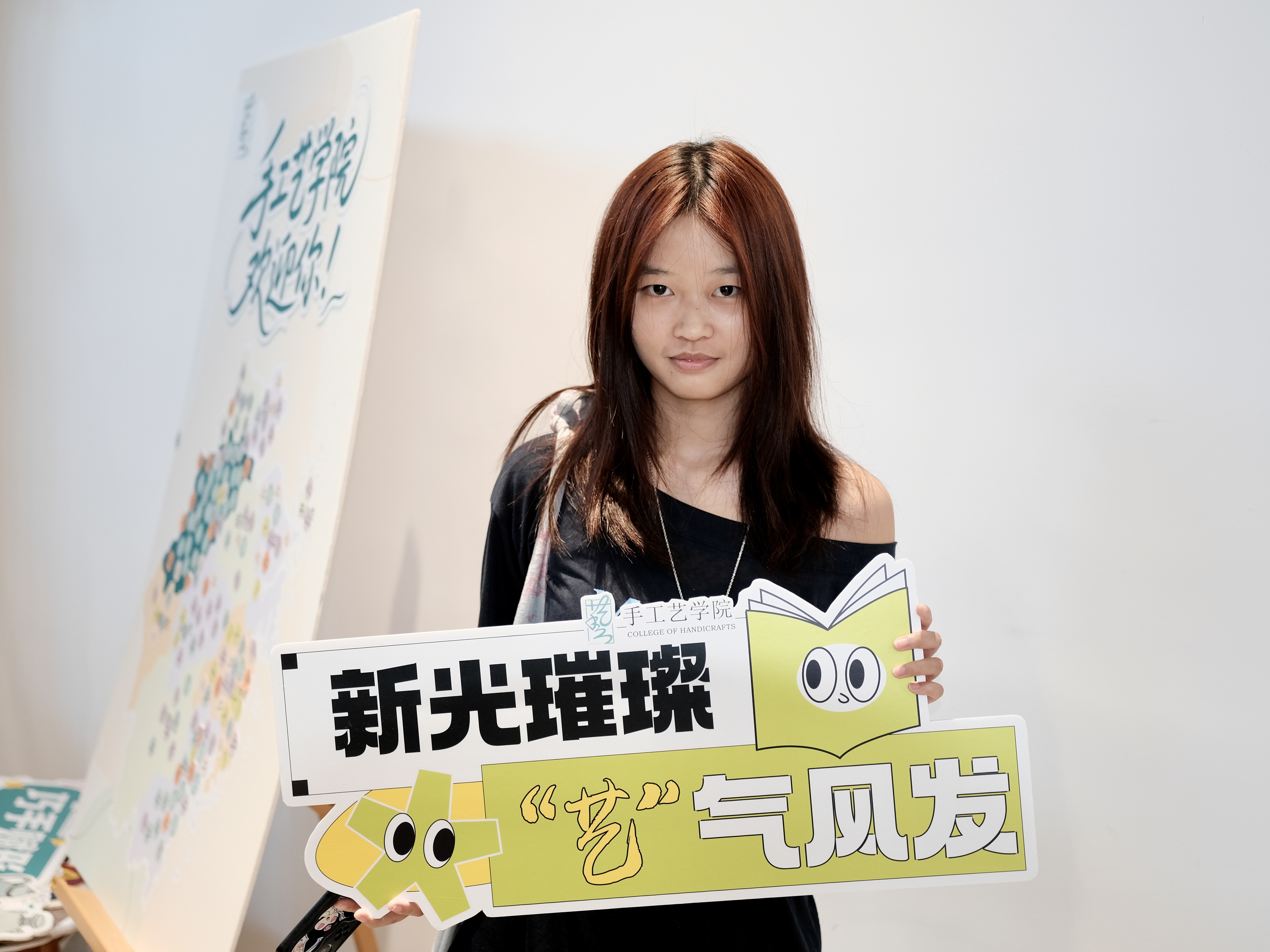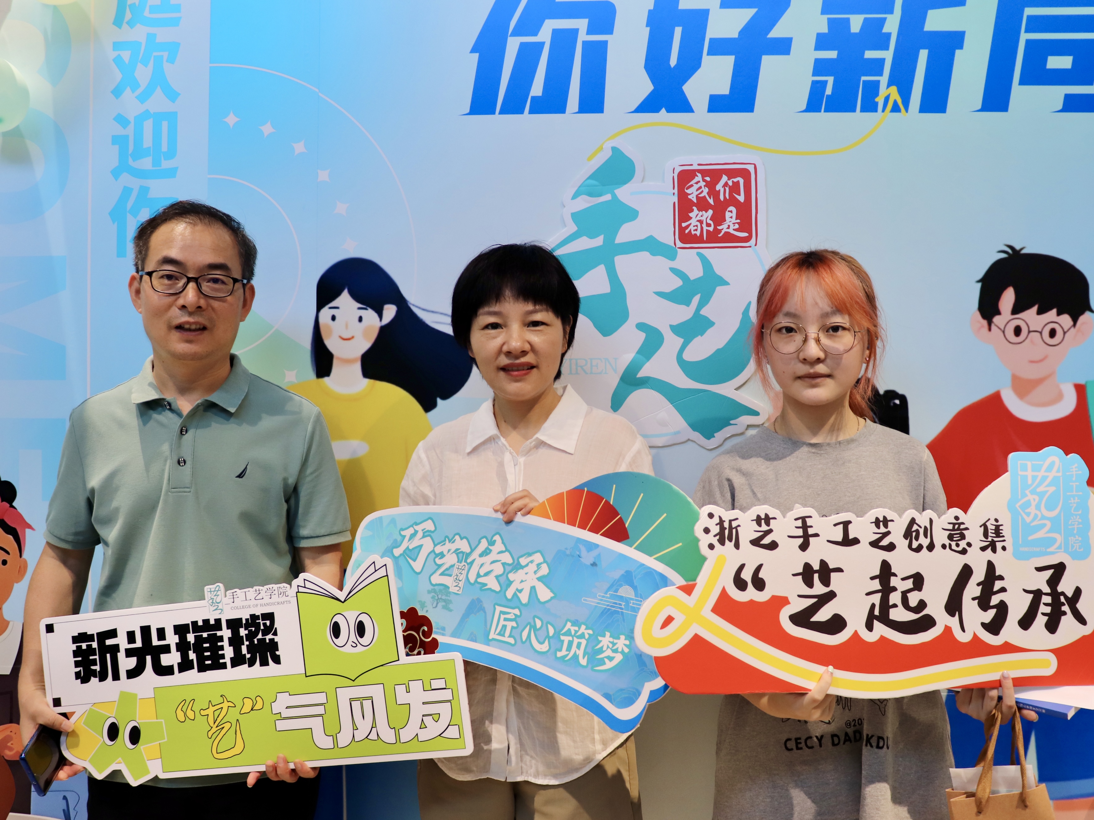 一幅幅书法墙,写下“传承与创新”;一张张喷绘,记录热烈的迎新瞬间;一份份“我是手艺人”的手工定制物料,成为与新生的第一次见面礼。