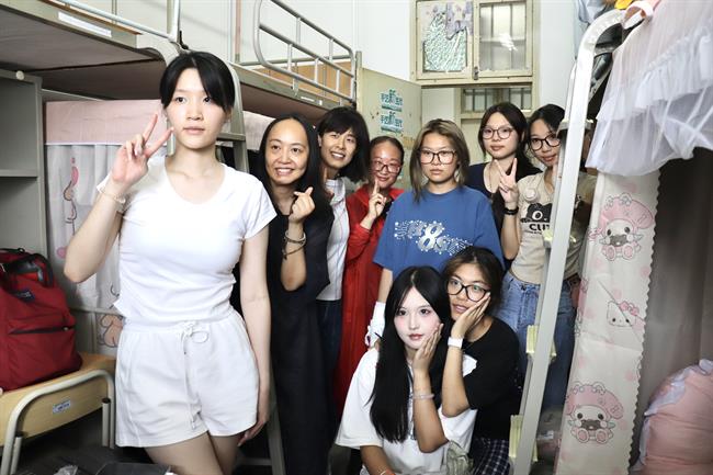 在寝室内,党总支书记钟黎亲切地与同学们交谈,询问家乡地域、兴趣爱好与开学适应情况。她送上真挚祝福,勉励大家勤奋学习、脚踏实地,在逐梦艺术的道路上笃行不怠。