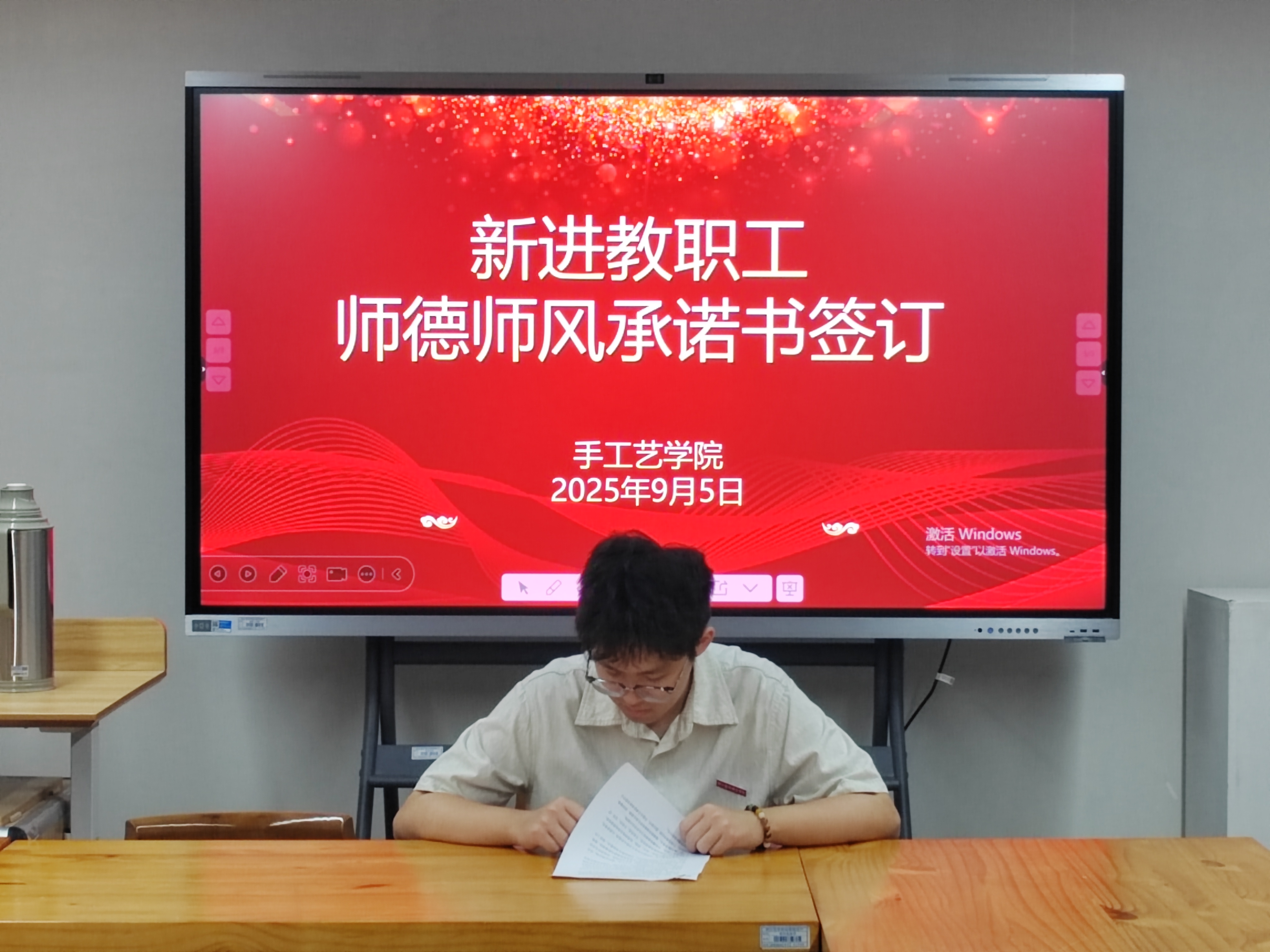 新学期伊始,为统筹推进学院各项工作有序开展,确保新学期顺利启动,9月5日上午,手工艺学院召开全院教职工开门大会。本次大会内容丰富,涵盖第一议题理论学习、各教研室主任发言和师德师风承诺书签订等,同时开展实训室安全检查与教研室教学研讨,为学院2025年秋季新学期工作全面部署落实起好头、开好局、迈好步。