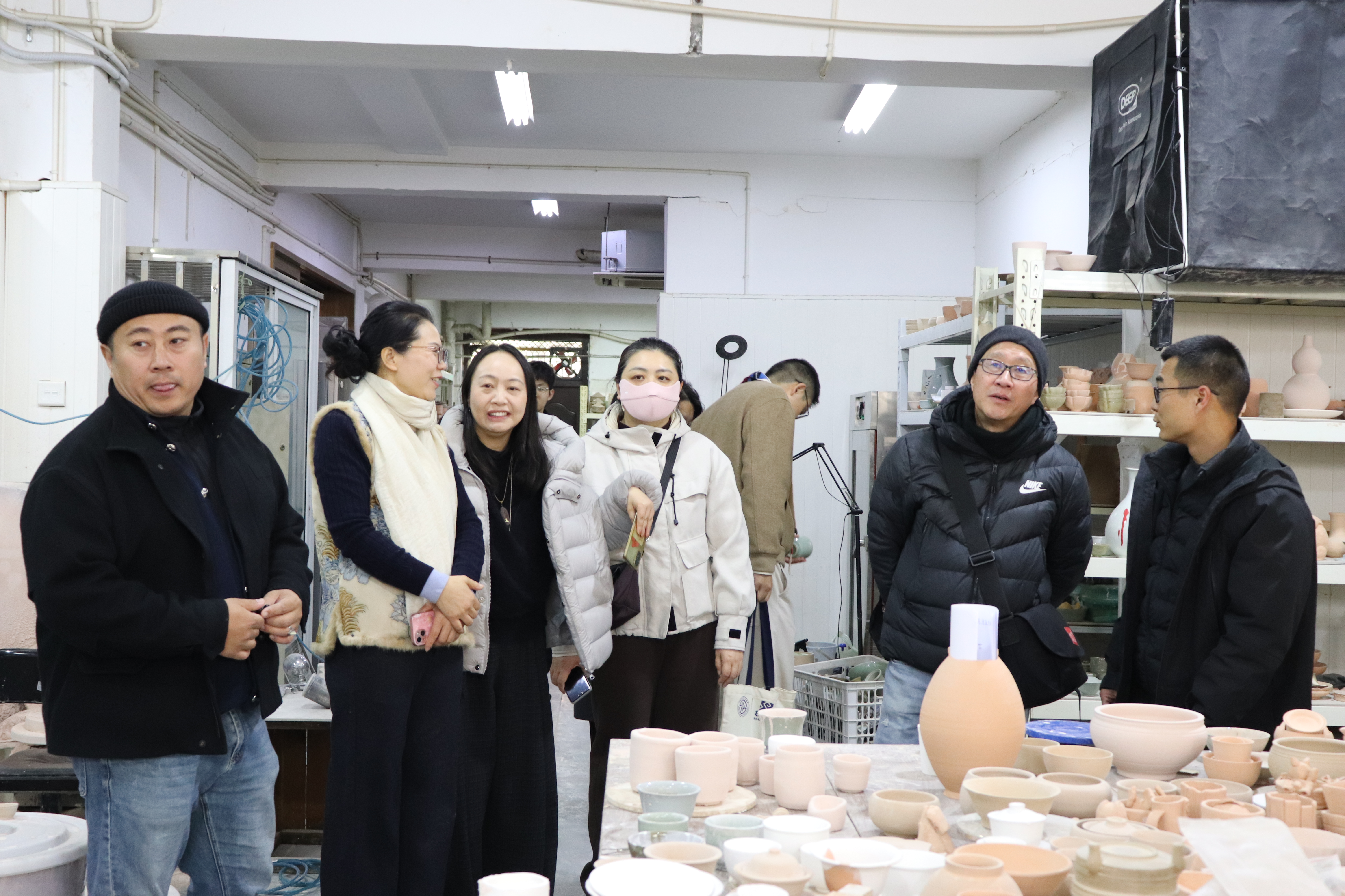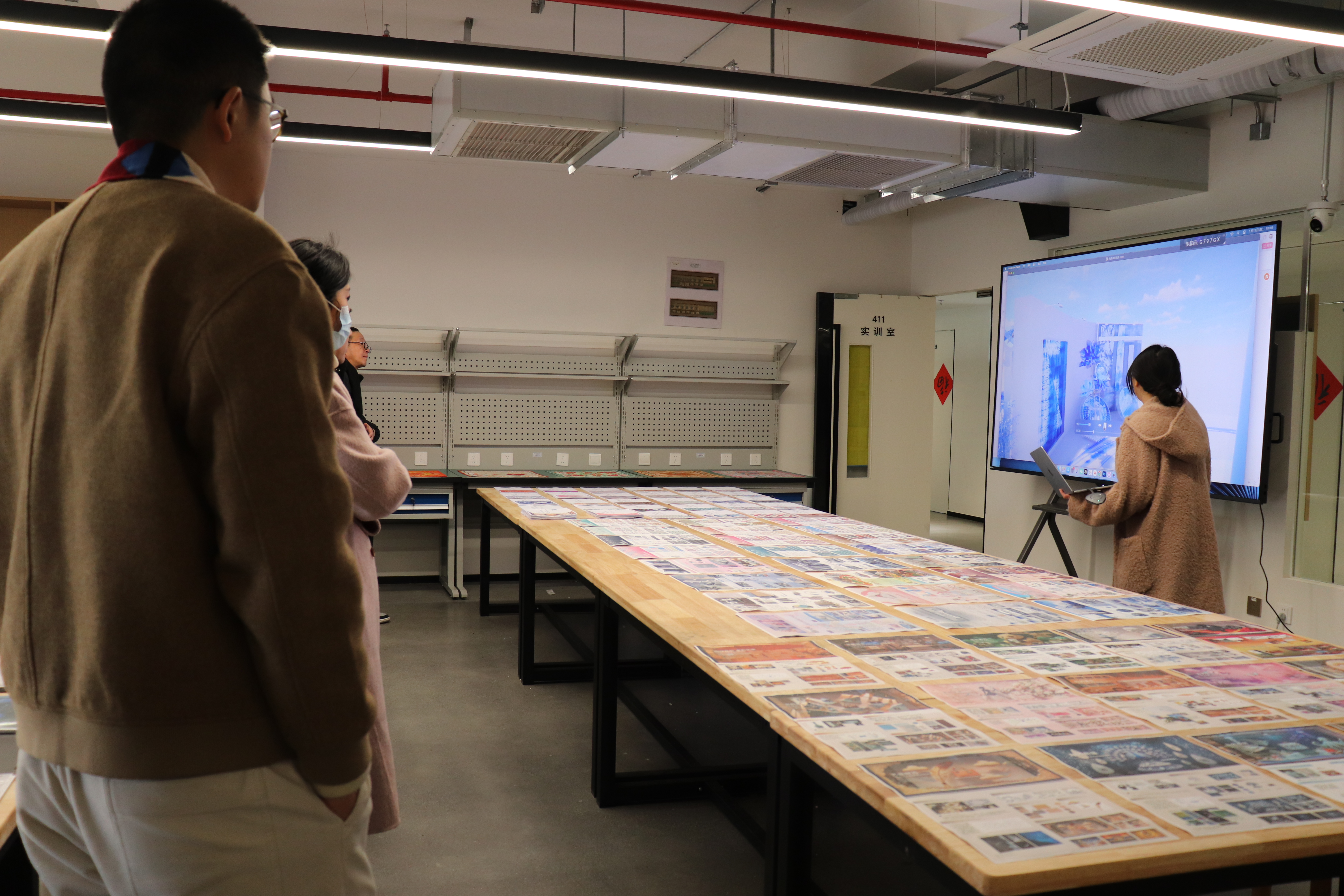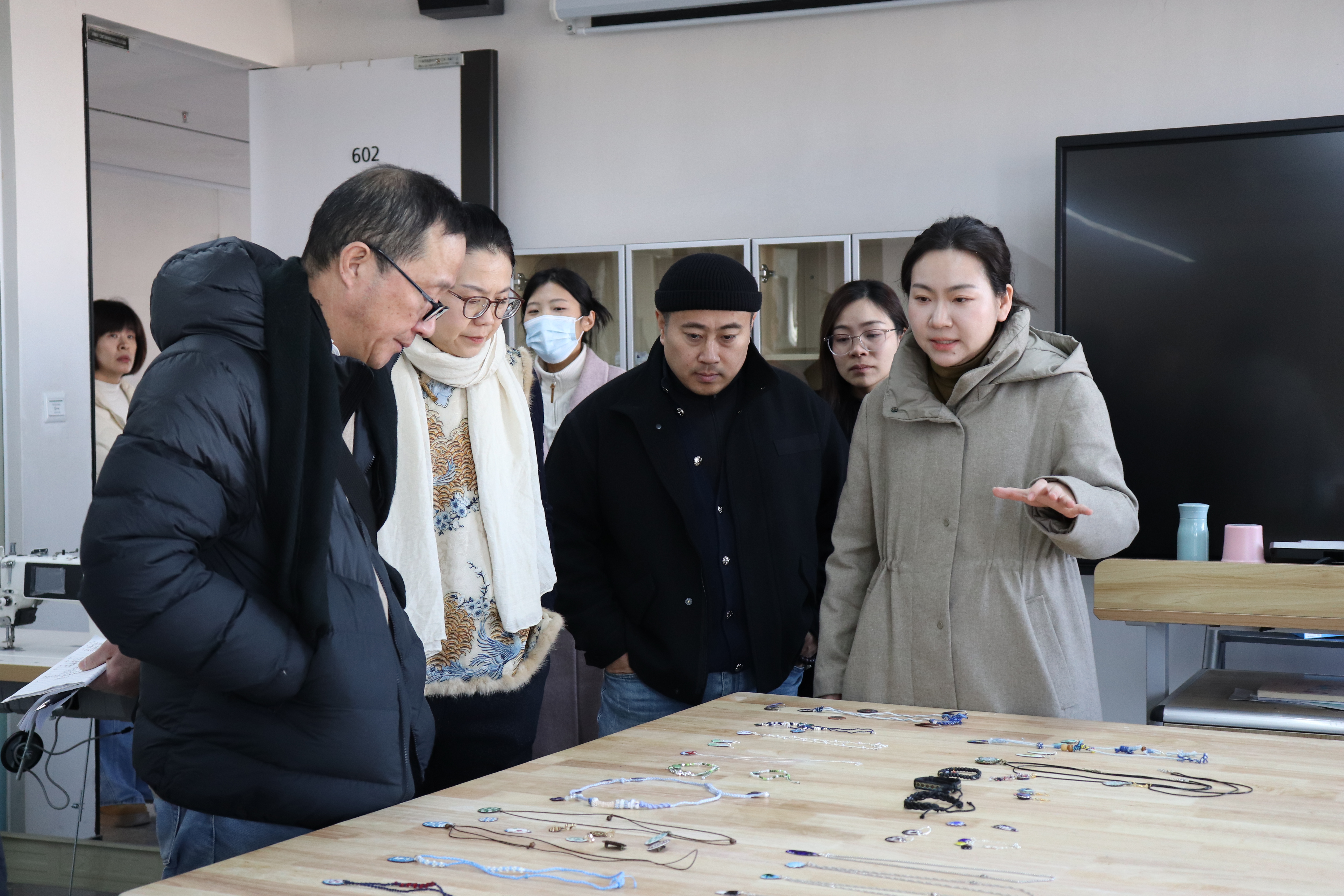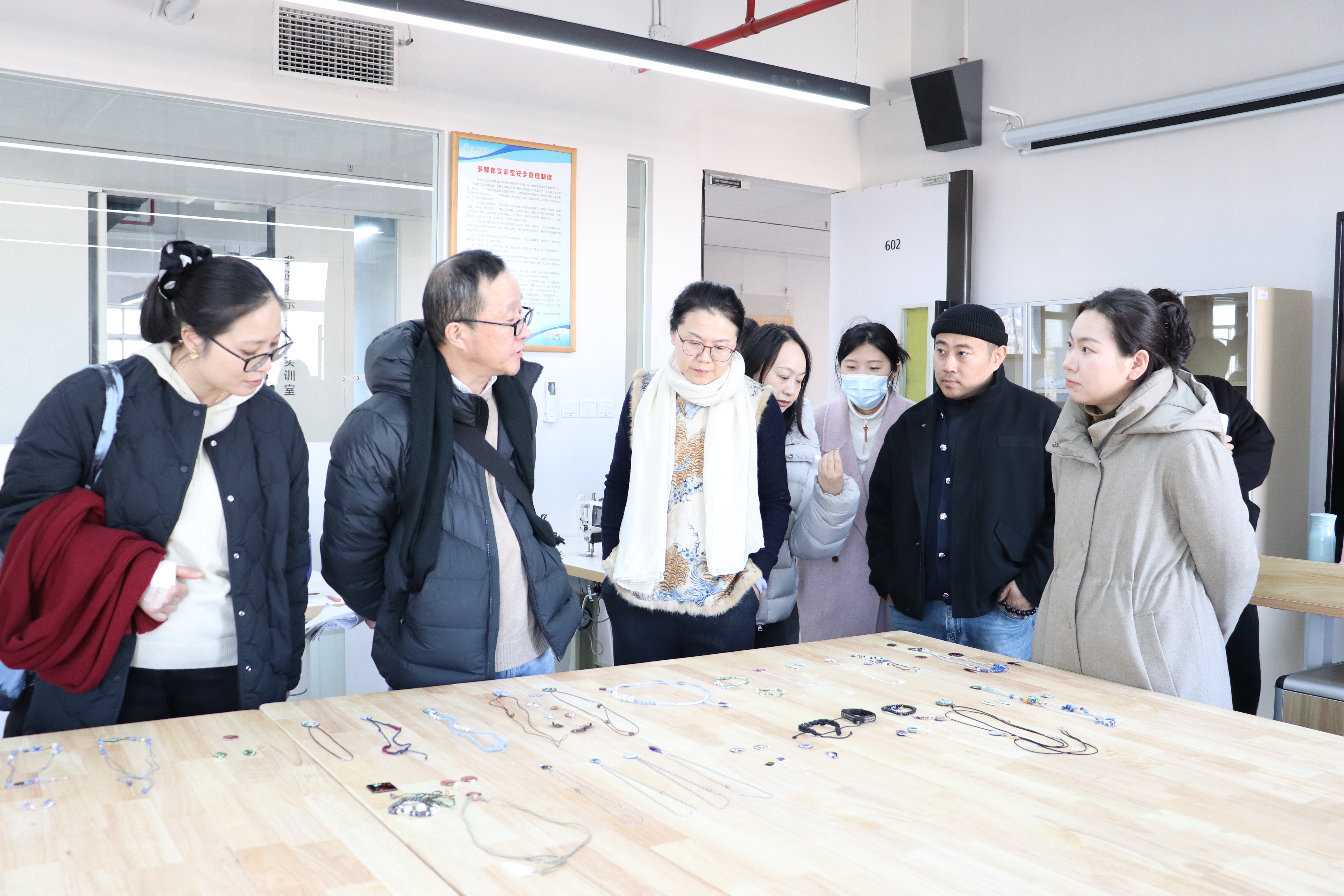 教学检查期间,手工艺学院全员教师集体观摩各教研室本学期教学成果和优秀作品:在本部教学区,重点查看文物修复与保护、民族传统技艺的阶段性教学成果,从文物残片修复到青瓷坯体制作,一件件作品尽显传统手工艺的传承匠心;在立业园实训楼,文化创意与策划、展示艺术设计、产品艺术设计专业集中展示学生作品,展现了学生的专业功底与创新思维。