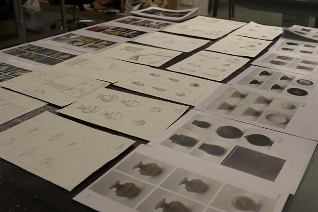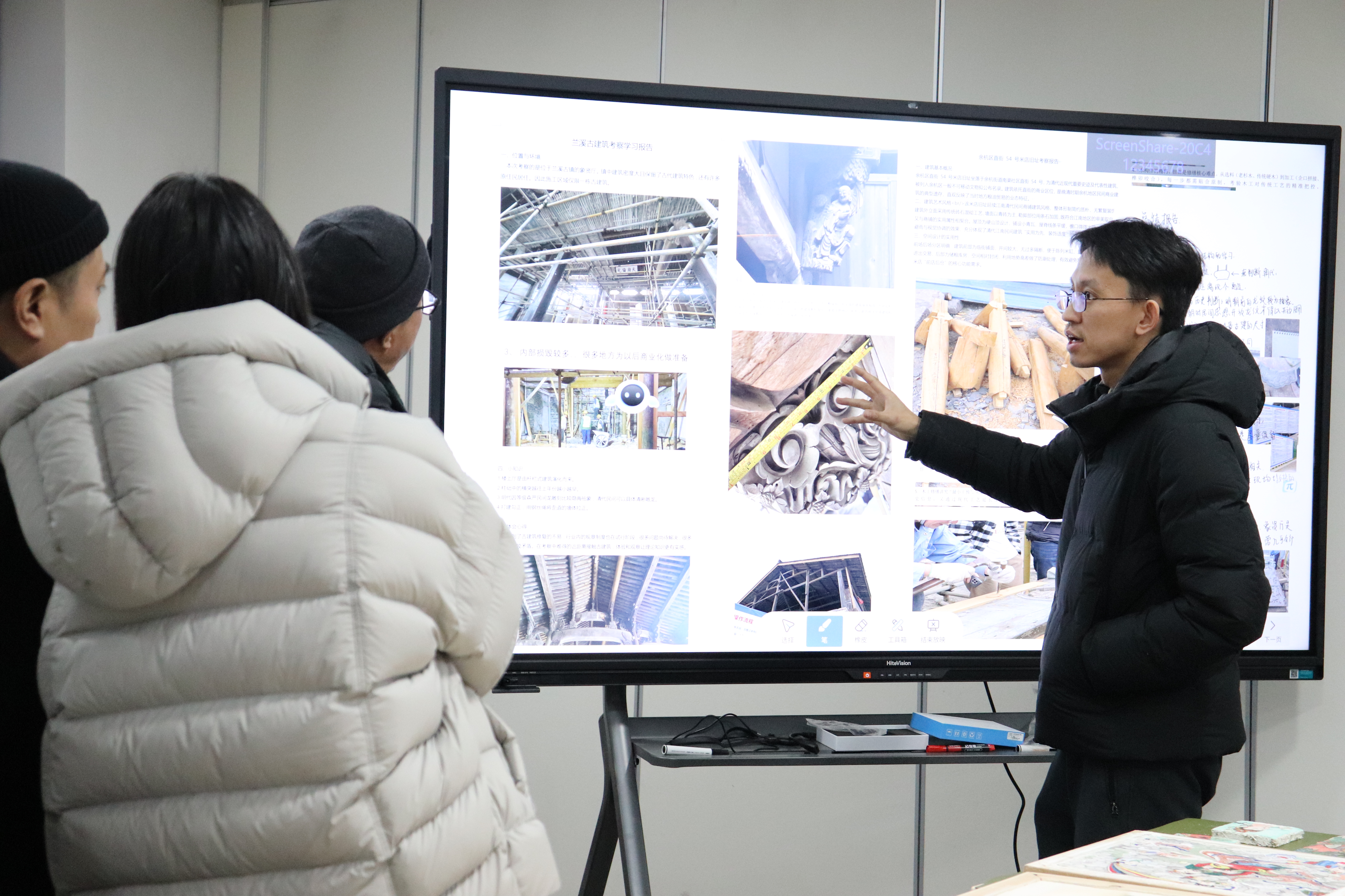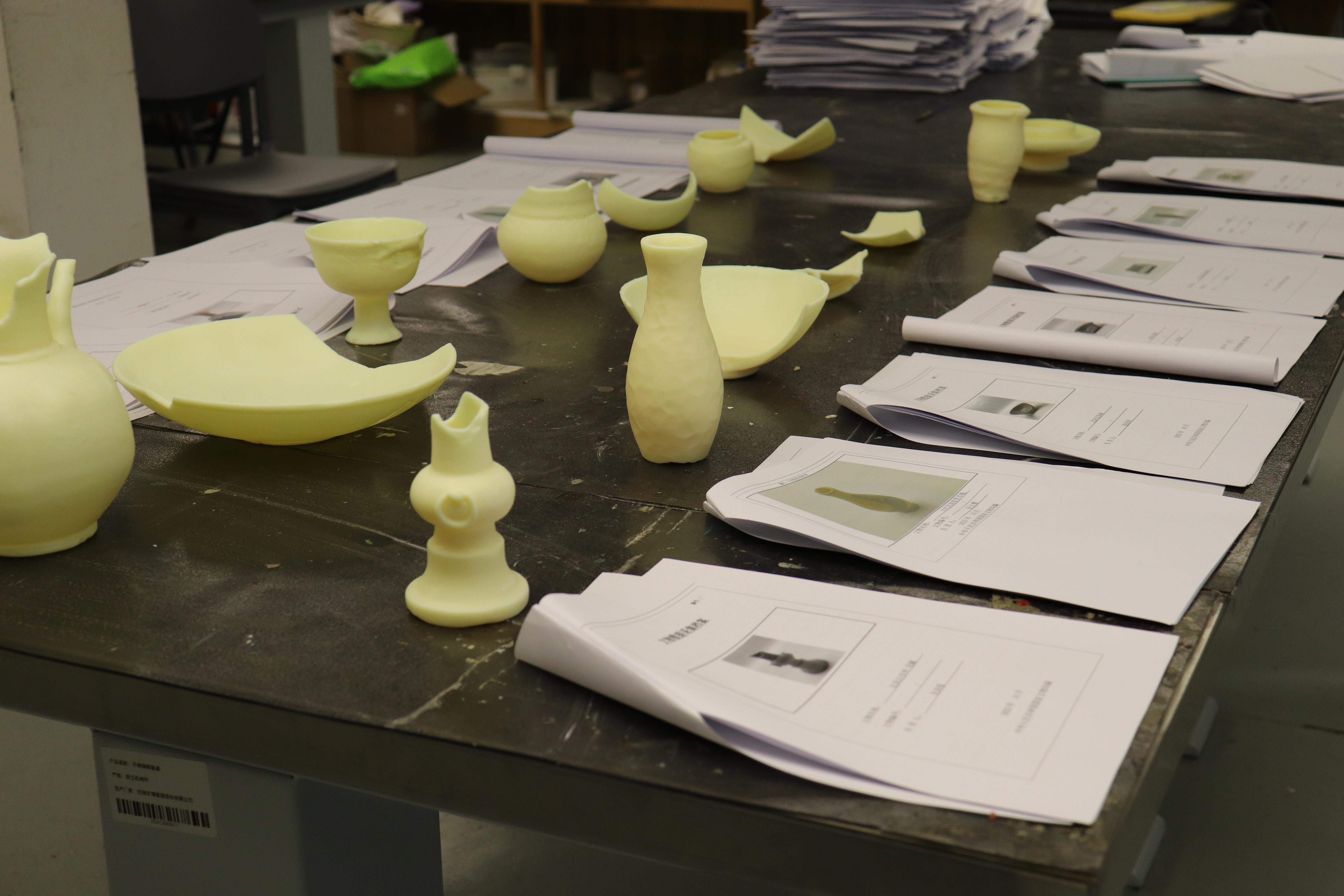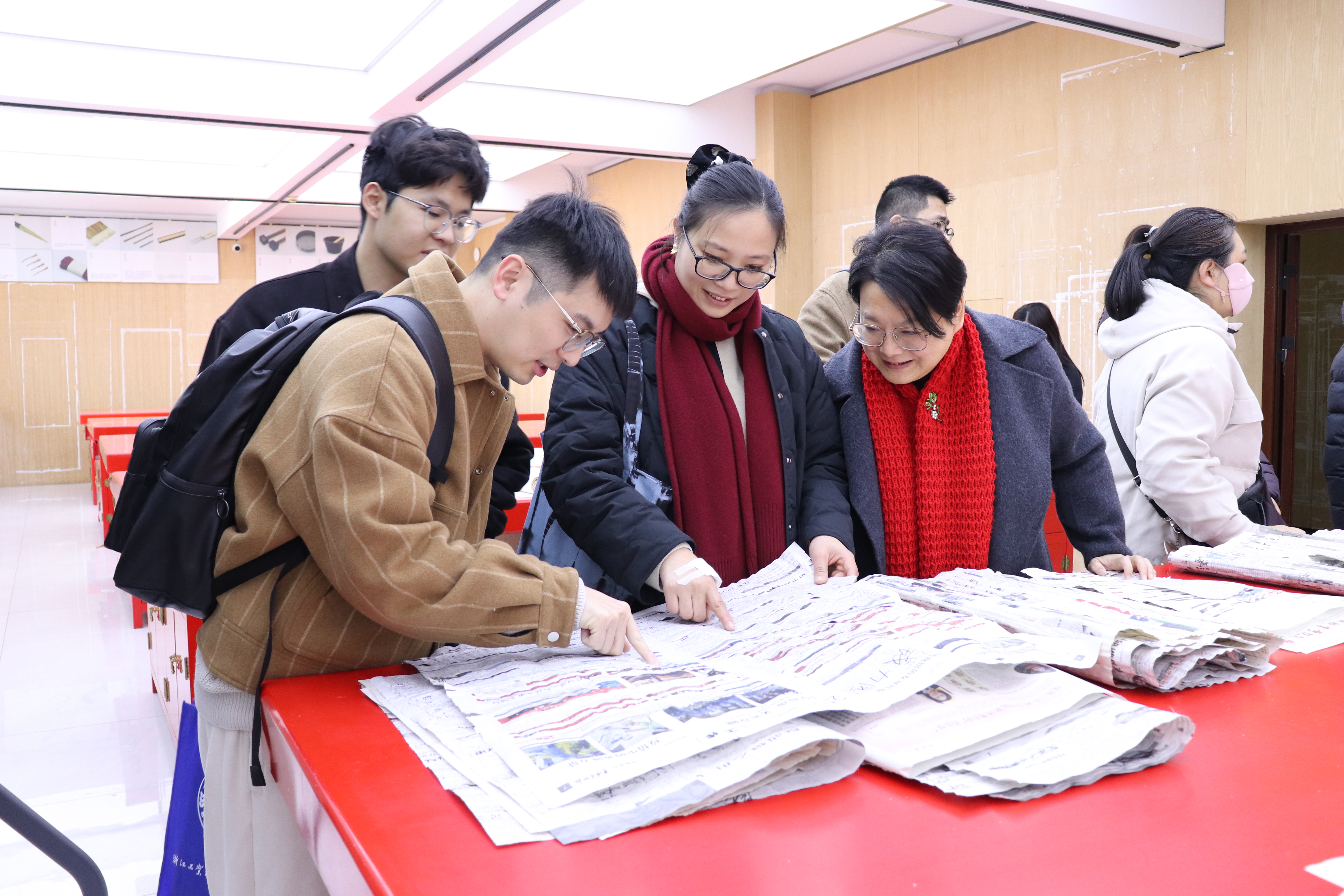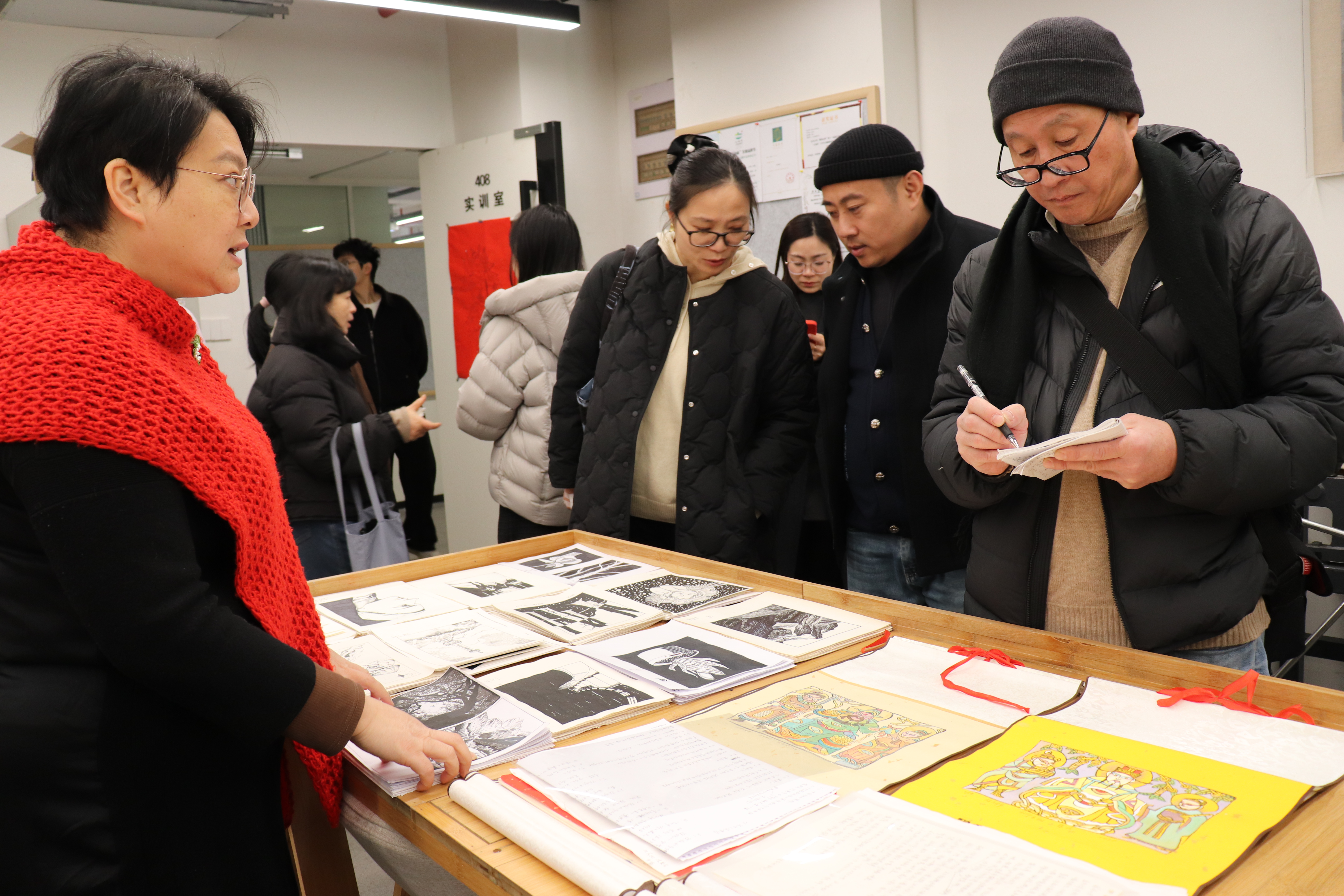 教学检查期间,手工艺学院全员教师集体观摩各教研室本学期教学成果和优秀作品:在本部教学区,重点查看文物修复与保护、民族传统技艺的阶段性教学成果,从文物残片修复到青瓷坯体制作,一件件作品尽显传统手工艺的传承匠心;在立业园实训楼,文化创意与策划、展示艺术设计、产品艺术设计专业集中展示学生作品,展现了学生的专业功底与创新思维。