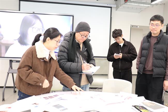 随后,期末总结大会正式召开。叶国丰结合教学检查情况作点评发言,他提出“文化是艺术的起点,可以走向未来”,强调手工艺学院学生要坚守匠心传承,夯实手工、手作、手绘能力,建议学院在融合数字化技术的同时,强化专业特色和专业内涵建设。同时,他从作业呈现、创意融合、教学互动、审美培养四个维度给出具体建议:一是提升教学成果的学术性与标准化,二是结合时代潮流融入创意元素,三是强化课程结课环节的教学互动,四是通过田野调查融入民俗民风体验,提升学生审美。
