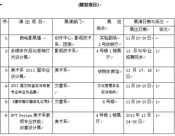 在感受灯光璀璨的舞台之余,不妨静下心来,去看看美术系《H+Y Design美术系教师专业技能创意设计展》、《美术系2013届毕业设计展》,影视技术系《多媒体作品与音响灯光设计展》和文管系《2013届文物鉴定与修复专业毕业作品展》等一系列展览,定会有所收获。