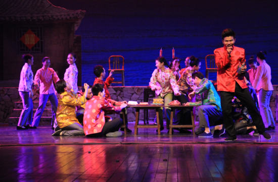 11月12日晚,一场载歌载舞、风格清新的歌舞剧《东海谣》在浙江实验艺术剧场精彩上演,浙江省委宣传部、省文化厅、省教育厅等上级部门领导和省内文艺界人士以及滨江高教园区师生兴致勃勃地观看演出,给予好评。该剧由嵊泗县委宣传部(县文体广电新闻出版局)和浙江艺术职业学院联合创排演出,嵊泗演员和浙艺学生在舞台上的表演夺人眼球。