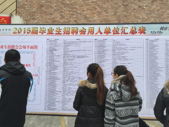 又是一年毕业季。12月19日,浙江艺术职业学院体育馆,一场2015届毕业生招聘会在气氛热烈地进行着。毕业生招聘会是浙艺院每年开展的传统项目,今年的招聘会吸引了来自北京、上海、江苏、广东和浙江省内各地的190家用人单位前来招纳贤才,为浙艺院1085名毕业生提供了2200多个就业岗位,招聘会现场呈现供需两旺的火热场面。学生共投递简历1694份,初步达成就业意向605人。通过学院招聘会,为需要就业的毕业生提供了更快捷的就业机会。