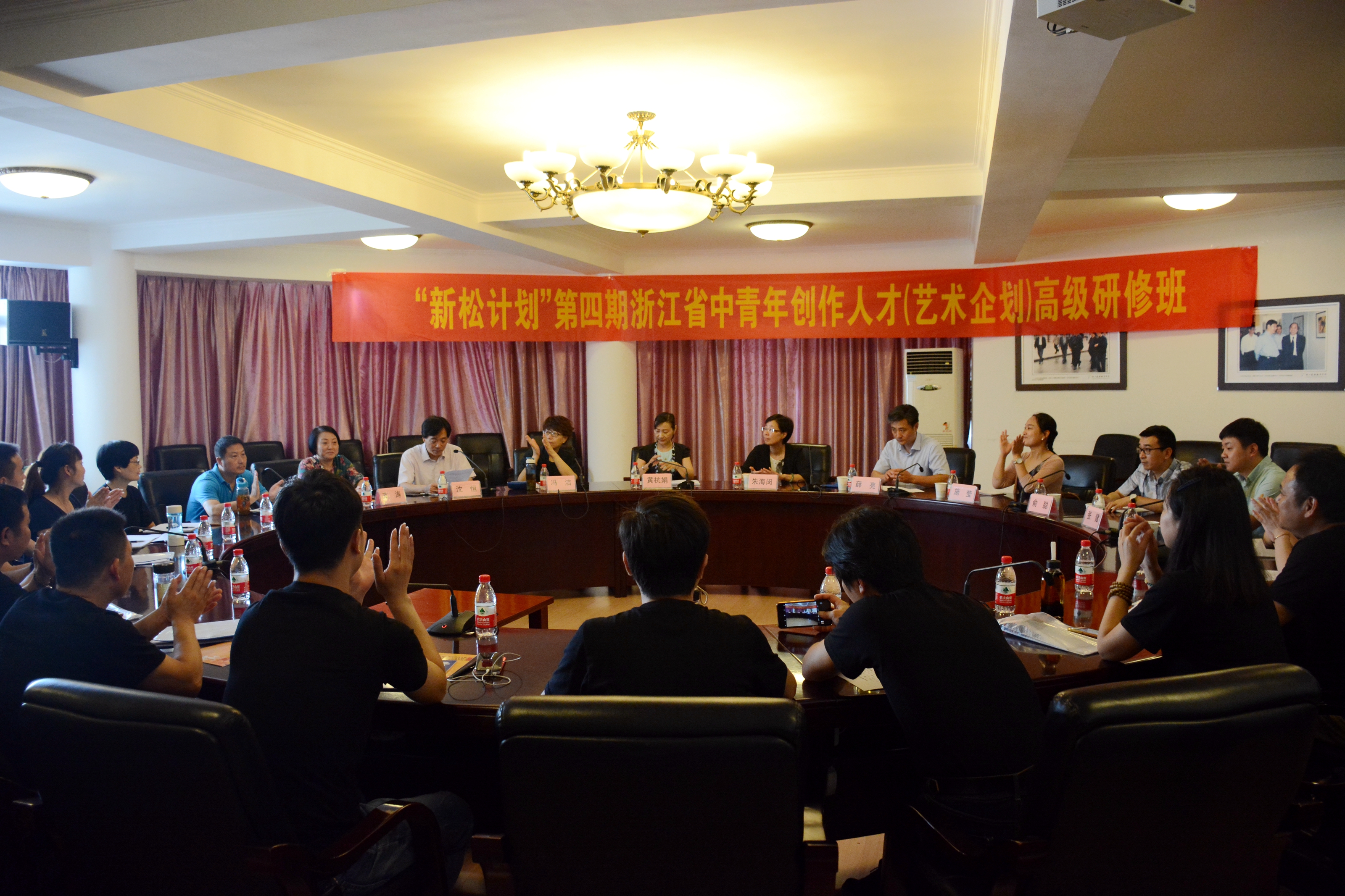7月5日,新松计划第四期全省中青年创作人才(艺术企划)高级研修班在浙江艺术职业学院开班。本期培训班师资团队名家荟萃,主教是一级编剧、著名企划(曾任浙江小百花越剧团副团长、创意总监)冯洁,授课老师特邀著名影评人和剧评人、中英文双语作家周黎明,中国文化艺术策划专家、中国人民大学文化艺术策划研究所副所长王鹏,北京皇城艺术品交易中心董事长、中国演出家协会常务理事胡月明,中国戏曲学院国际文化交流专业创始人之一、教授曹林,中共北京市委《前线》杂志社副总编辑、《北京文化创意》杂志主编陈秋淮,中国戏曲学院艺术传媒学院副院长、中国艺术管理教育学会常务理事于建刚,以及上海大剧院总经理张笑丁、上海艺动天下文化传播有限公司总经理许霈霖、上海戏剧学院导演系教授季强、钱江晚报副总编吴蒂,钱江浪花文化艺术有限公司总经理陆湘汉、著名制作人周国清、夏茂恬等学界和业界的著名专家学者。培训对象为全省专业文艺院团院团长、企划营销负责人等。