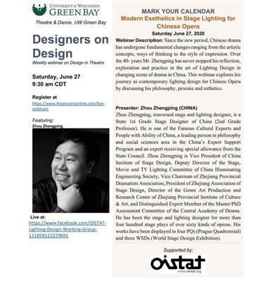 今年疫情期间,国际舞台美术组织OISTAT邀请世界各地卓越设计师在ZOOM上交流、讨论和讲座,周正平在受邀之列。今晚22:30,将进入“周正平时间”。据了解,他的演讲主题是“中国戏曲舞台灯光艺术的现代审美”,将从发展历史、审美表达、美学追求等多个方面,向世界介绍中国戏曲舞台灯光艺术。