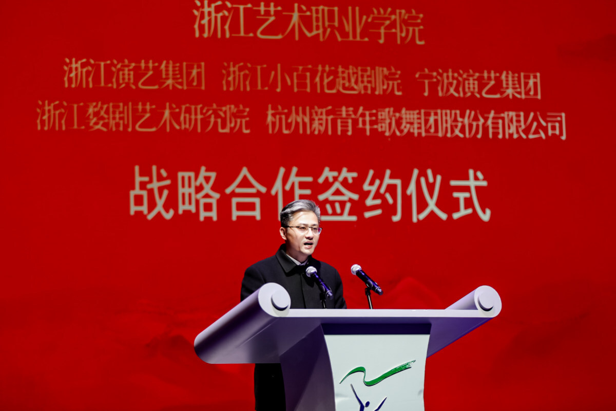 当晚,浙江艺术职业学院还与浙江演艺集团、浙江小百花越剧院、宁波演艺集团、浙江婺剧艺术研究院、杭州新青年歌舞团股份有限公司分别签订战略合作协议,在浙艺推进“双高”建设的背景下,在新一年浙艺将与五大院团协力开展产教融合、校团共建,高校与院团将优势资源共享,创新艺术人才培养合作机制,持续培养业务水平高、综合能力强的艺术表演人才,为文化浙江和“重要窗口”建设作出更多贡献。