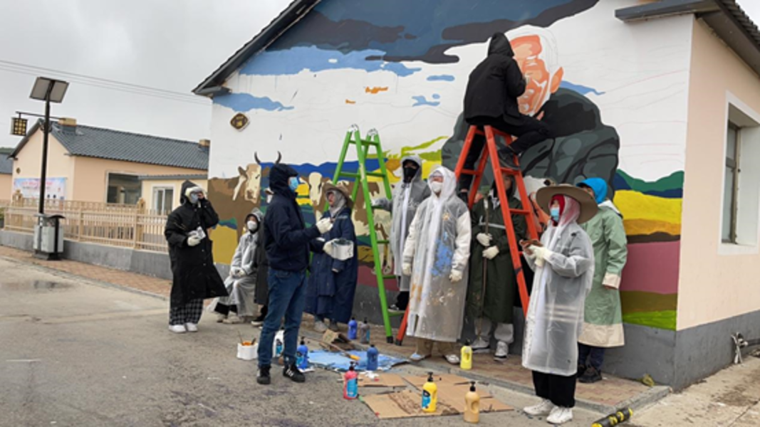 5月20日至6月3日,浙江艺术职业学院13名师生完成历时15天的阿尔山乡村墙绘与写生活动,将明水河镇西口村脱贫攻坚和乡村振兴工作成果绘在墙上、画在板上。