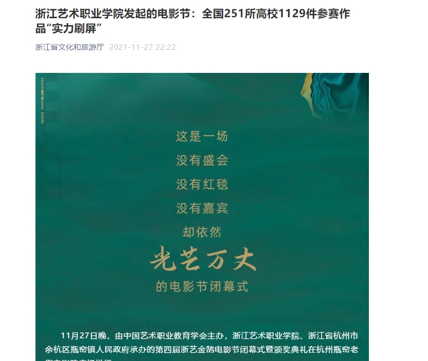 浙江省文化和旅游厅:浙江艺术职业学院发起的电影节:全国251所高校1129件参赛作品“实力刷屏”