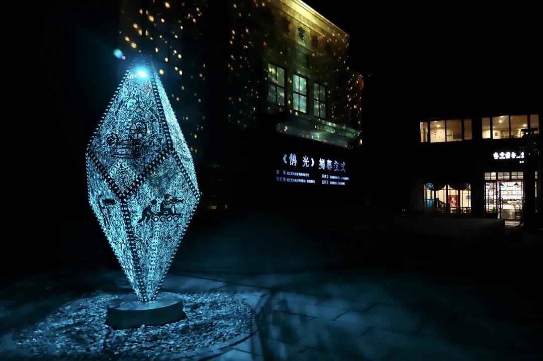 闭幕式上,瓶窑老街电影院前的“鹄光”雕像“云揭幕”。