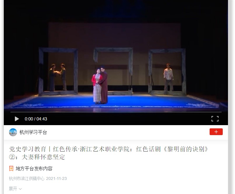 党史学习教育丨红色传承·浙江艺术职业学院:红色话剧《黎明前的诀别》②:夫妻释怀意坚定