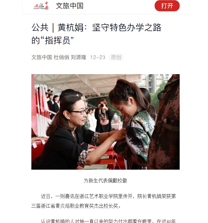近日,一则喜讯在浙江艺术职业学院里传开,院长黄杭娟荣获第三届浙江省黄炎培职业教育奖杰出校长奖。