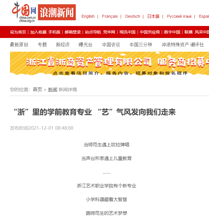 中国网浪潮新闻:“浙”里的学前教育专业 “艺”气风发向我们走来