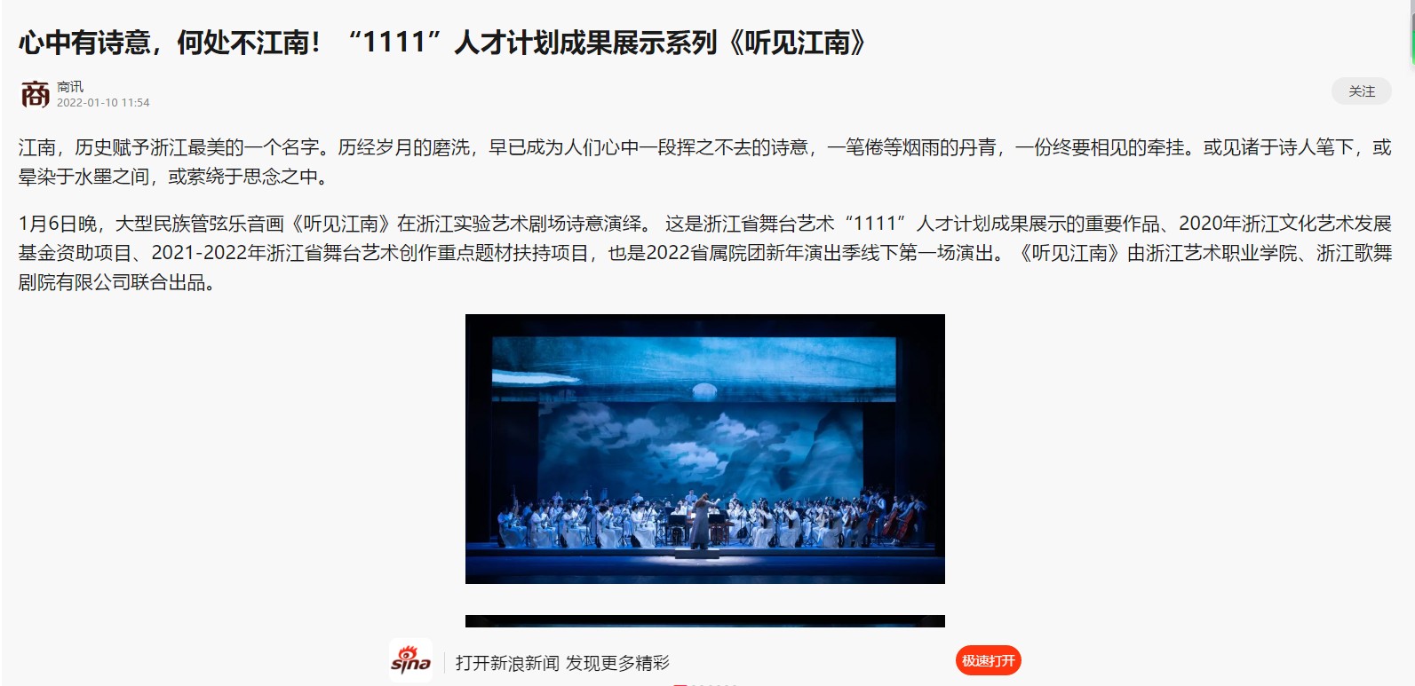 新浪新闻客户端:心中有诗意,何处不江南!“1111”人才计划成果展示系列《听见江南》