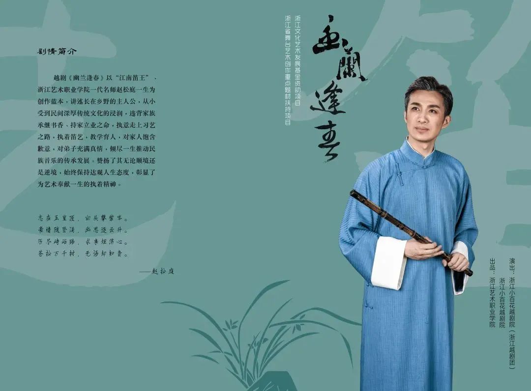 浙江艺术职业学院和浙江小百花越剧院联合打造,浙江越剧团演出的《幽兰逢春》,是第一部演绎现代浙江本土艺术家成长的舞台剧,讲述了“江南笛王”赵松庭从学笛到登上世界舞台,从教后桃李满园的历程。