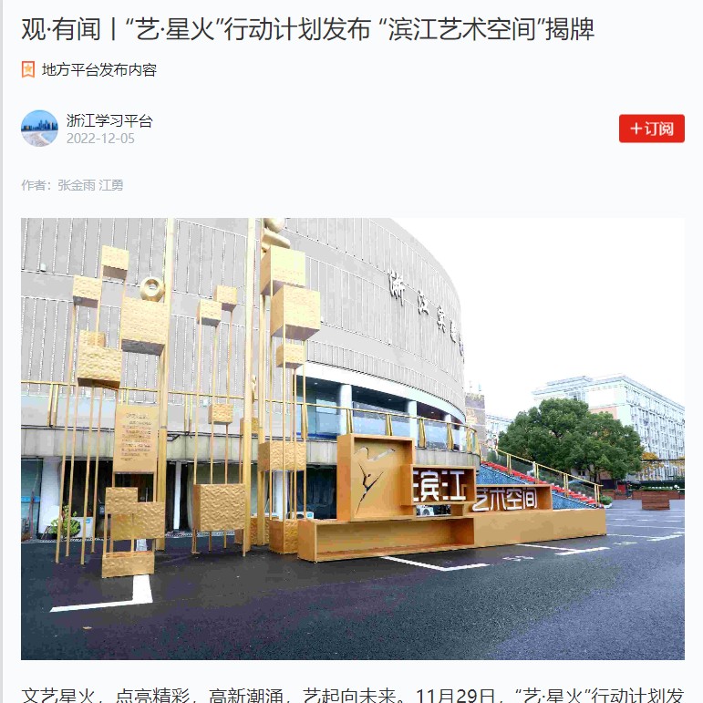 学习强国浙江平台:观·有闻丨“艺·星火”行动计划发布 “滨江艺术空间”揭牌
