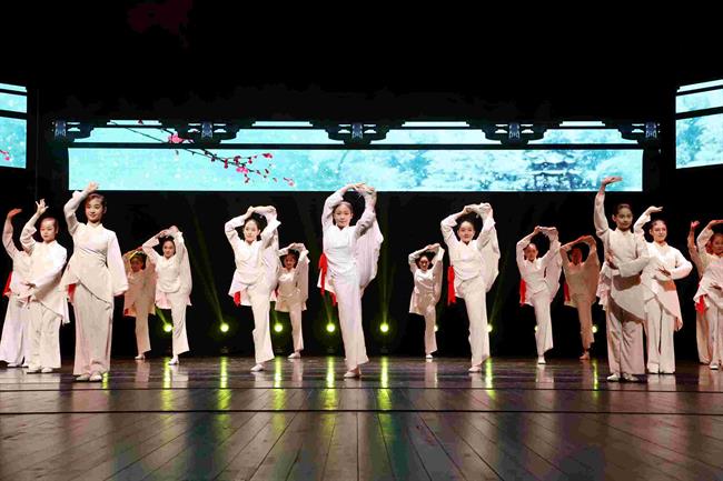 随后,由浙江艺术职业学院舞蹈学院、音乐学院、戏剧影视学院、戏曲学院的女子群舞《春水前溪》、大型民族管弦乐音画《听见江南》选段——民乐合奏《灯月交辉》、歌曲《共富不是梦》、古风走秀《青墨书晚风》、越剧戏韵《传承》片段,滨江区文艺代表、歌唱家项珮霞与浙江艺术职业学院音乐学院学生共同演绎的歌舞《春风十万里》为现场的观众带来了一场精彩的演出。