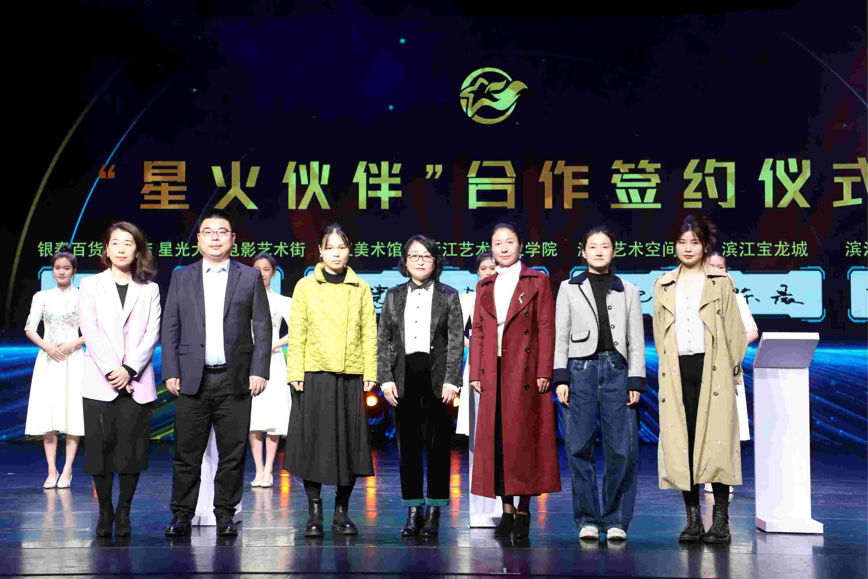 浙江艺术职业学院与“星火伙伴”浙江美术馆、滨江区西兴古镇、滨江艺术空间、星光大道电影艺术街、滨江宝龙城、银泰百货滨江店共同签署合作协议书。