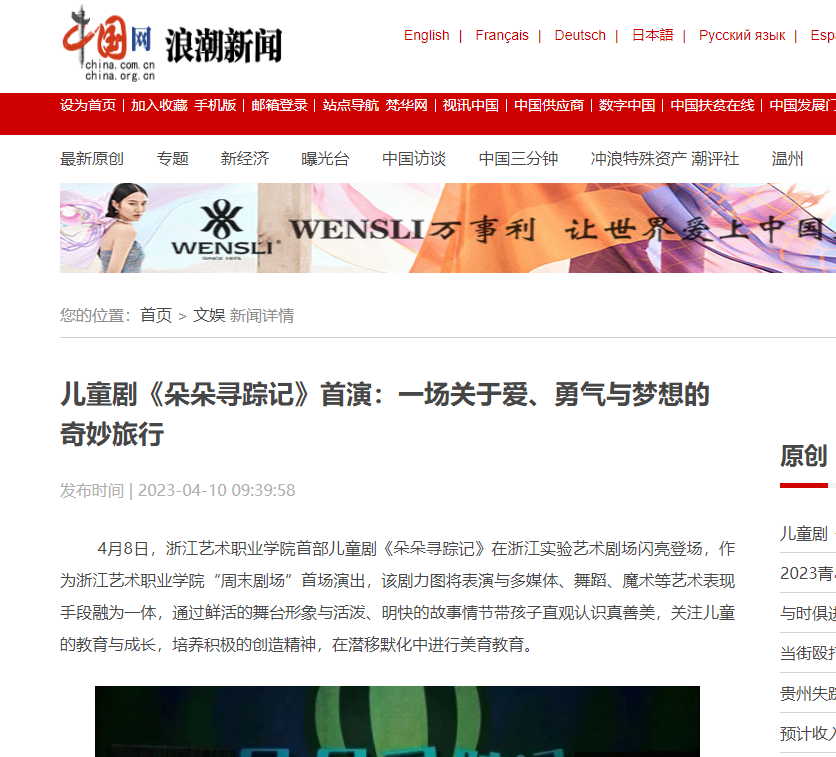 中国网浪潮新闻:儿童剧《朵朵寻踪记》首演:一场关于爱、勇气与梦想的奇妙旅行