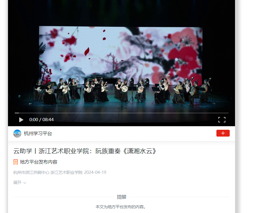 学习强国杭州平台:云助学丨浙江艺术职业学院:阮族重奏《潇湘水云》