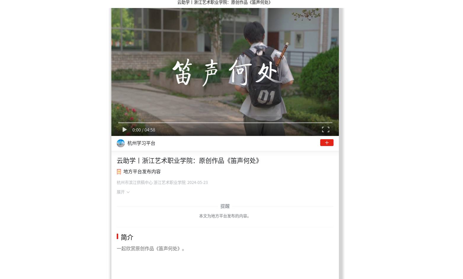 学习强国杭州平台:云助学丨浙江艺术职业学院:原创作品《笛声何处》