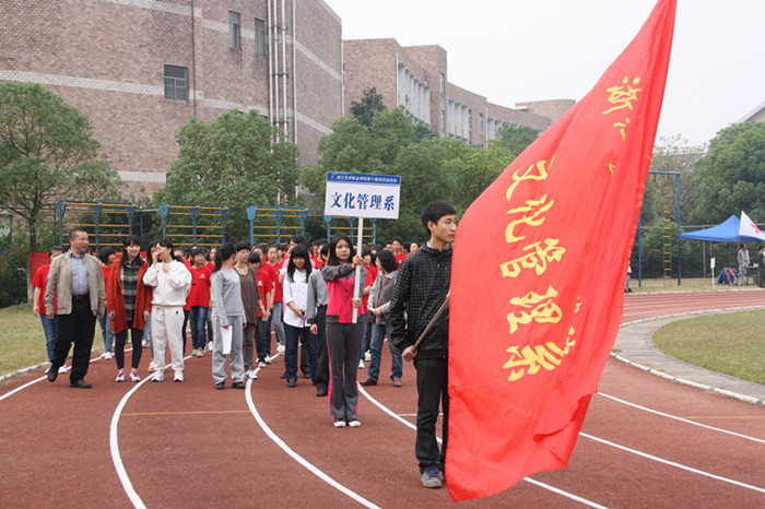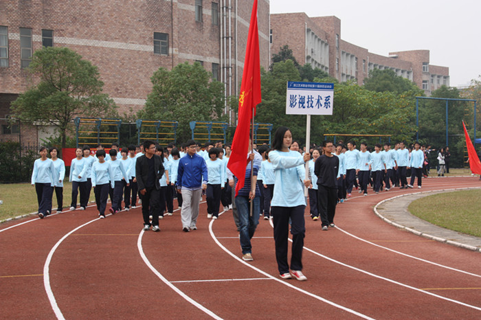 同学们青春活力的身影,老师们带队高昂的热情,本届运动会的入场队伍打出了头阵,最先吸引师生们的眼球。戏剧系、音乐系、美术系、附中、舞蹈系、影视技术系、文化管理系依次接受主席台的检阅。在激昂的音乐声中,运动会的氛围在浙艺院的操场上洋溢开来,以一种轻松大气,活跃开怀的气势在秋日的暖阳中绽放起艺院独特的芳华。
