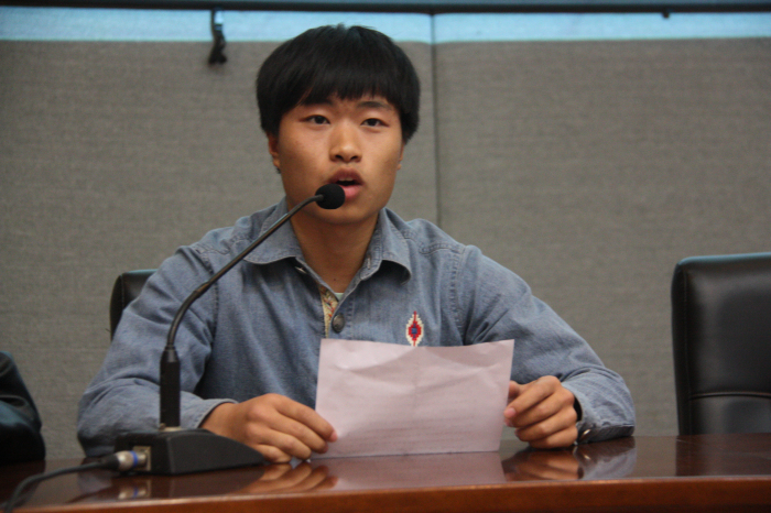 在激昂的国歌声中,大会正式开始。夏开堂对大会的顺利召开表示祝贺,并向文管系团干部、学生干部致以诚挚的问候。他对文管系的工作表示肯定与赞赏,也对文管系即将产生的团学寄予殷切的希望,希望新一届的团学代表能够继承发扬文管系的优良传统,学习老团学的好作风、好方法,在学生当中起到先锋模范带头作用,取得优异成绩;也希望在团学带领下,全系同学能够树立良好的系风、学风和工作作风。