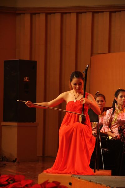 参演的全体同学配合默契,各种乐器间的融合堪称完美,呈示的一招一式都体现得行云流水般顺畅,已完全具备专业演员的要求和水准。无论是唢呐独奏《正月十五闹雪灯》,还是板胡独奏《花梆子》,都充满了浓浓的地方特色;单簧管与新民乐《小河淌水》及江南丝竹《春晓》,更是充分表现了演奏者们娴熟的技艺。《夜深沉》大胆创新地用杨琴齐奏,品味起来别有一番趣味;笛子独奏《秦川情》带动了全场的气氛,将音乐会一次次推向高潮。最后,在一曲动人心弦的越剧音乐合奏《百花公主》中,音乐会圆满落幕。