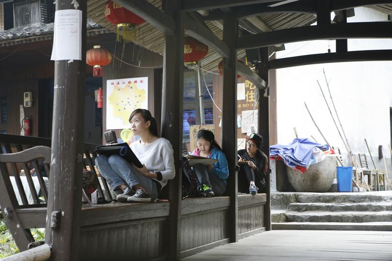 林坑古村沉睡了七百年,在画家赵瑞春的笔下被重新唤醒,中国航拍第一人、凤凰卫视台长赵群力在这里航拍殉难,电影《自娱自乐》在这里开拍,让这个偏居一隅的小山村迅速蜚声中外。学生们在这个如诗如画的山林古村格外好奇,在青山绿水间,同学们拿起相机和画板记录下这片美丽的山水风景。老师们还带领学生们去参观附近的苍坡,了解另一种建筑结构,还有著名的永嘉名人叶适、历史悠久的南戏。
