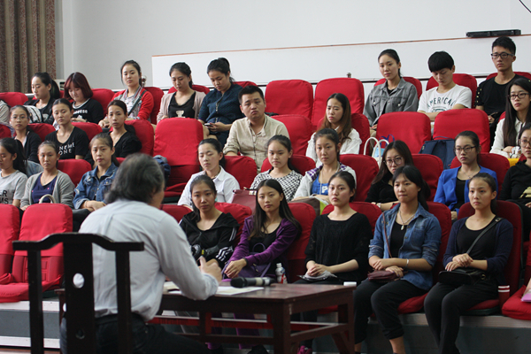 梅跃进用轻松的语调营造了愉悦的讲座氛围,从不同角度与同学们谈了党的政策,鼓励大家要坚持党的宗旨、紧跟党的步伐。首先,他向同学们介绍了社会主义文化建设基本方针“二为”:为人民服务,为社会主义服务;接着,又结合艺术专业特色介绍了“双百方针”:百花齐放,百家争鸣。即在文艺创作上,允许不同风格、不同流派、不同题材、不同手法的作品同时存在,自由发展,在学术理论上,提倡不同学派、不同观点互相争鸣,自由讨论;最后,向同学们提出“三贴近”原则:贴近实际、贴近生活、贴近群众。遵循这一要求,宣传思想战线应当把“三贴近”作为改进和加强自身工作的一条重要指导原则。