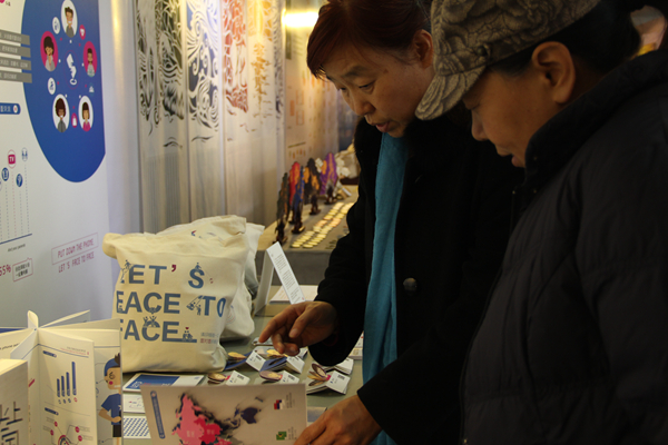 在众多作品中,《星乐照明包装创意设计》最为夺人眼球。以暖橙色为主调,加入具有星空效果的趣味元素,用自身产品为装饰物展现环保设计的主题。用具有一定透光性和柔韧性的方形纸片经过反复折叠形成灯泡包装造型元素,再用多个元素进行叠加拼接的方法组成一盏盏六角、八角灯。背景墙上播放着灯泡包装的制作过程,展台上摆放着处于制作过程的半成品,增强了与观众的互动性。