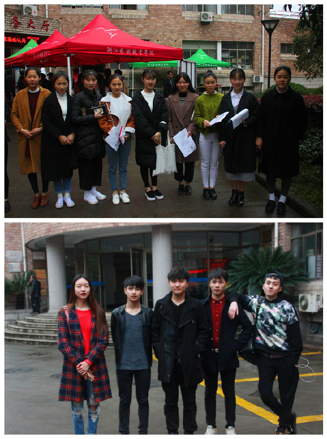 洋溢的笑容展现出他们自信满满的一面。因为艺术,他们走到了一起,成为一群无话不说的小伙伴;因为艺术,他们结伴前行,共同报考心中的艺术殿堂;没有家长的陪同,有的是伙伴之间的鼓励和支持,一群热爱艺术的人,为自己的梦想拼搏努力。他们分别是来自永嘉县职业学校和杭州艺术学校。