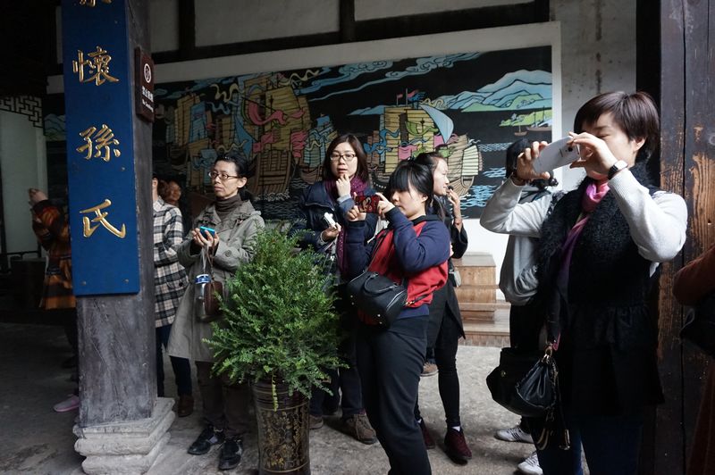 在这个春意盎然的时节,女教工们在古镇愉快而尽心地享受古朴与自然。广场上,围聚一起照一张全家福大合影;七八人成群,上优美pose定格成一张张古镇丽人的美色图;逛古街,寻访曾经的孙吴遗,感叹一段历史;听一段戏文,欢快地“”着戏台上演员抛下的“状元笔”,讨得金榜题名的彩头簇拥在村民小屋内,买三两桶米酒和四五袋米糕……生活就是这样美好,这一天是辛勤育人一年了的女教工们的幸福时光。