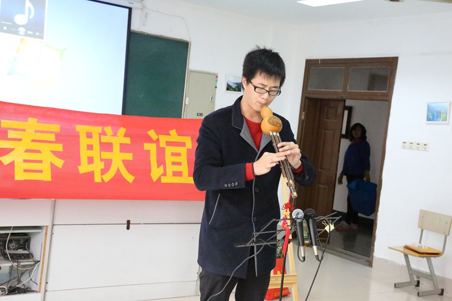 33下午,杭州市退休干部大学老年葫芦丝班在浙江艺术职业学院影视技术系举行贺春联谊会,进行葫芦丝演奏、学习和交流。浙江省新四军历史研究会浙西分会会长、副会长和浙艺院基础教学部负责人史长虹到会祝贺,20多名老干部参加活动。老年葫芦丝班班长、我院基础教学部退休教师徐洪江主持活动。