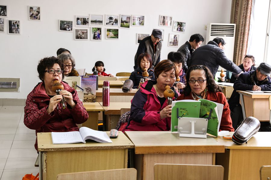 退休老干部在浙艺院玩起迷人的葫芦丝