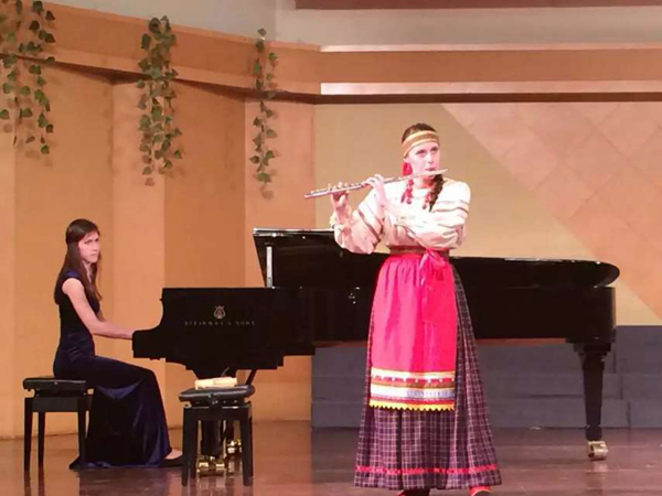 当晚,观众席座无虚席。来自莫斯科的同学们带来了一场别开生面的演出,动人的旋律和翩跹的舞姿让在座的音乐系同学深深陶醉。莫斯科的同学们还邀请台下同学上台互动,带来了不同的音乐体验。