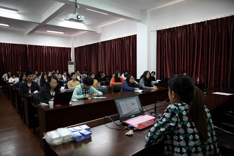 讲座中,读秀学术搜索培训专员徐鸽首先为师生详细介绍了“读秀”的特点和各项检索技巧,并简要介绍歌德电子书借阅机使用方法。随后,万方知识服务平台培训专员刘叶子以《我的论文我做主》为题,介绍了如何利用万方数据库帮助论文选题和写作。最后,川页科技有限公司的许建宾简要介绍了KUKE数字音乐图书馆和起点自主考试学习系统的情况,并与师生进行了愉快互动。