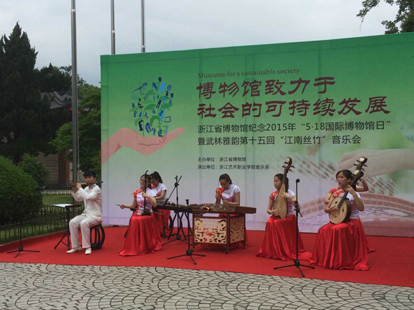 为庆祝第39个国际博物馆日,5月18日音乐系党总支组织优秀青年教师、专业特长学生于浙江省博物馆孤山馆区上演“江南丝竹”音乐会。音乐系师生不仅为大家带来了一场内容丰富、演奏精湛的音乐会,还为搭建博物馆与公众沟通互动的平台、加深公众对博物馆的了解与认同等建设性发展项目推波助澜。