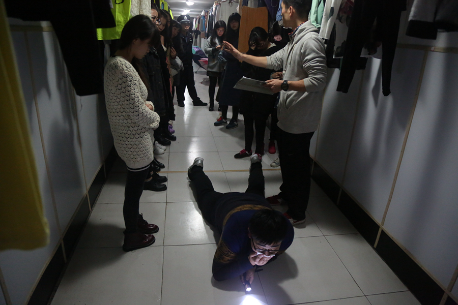 活动开始,老师们兵分三路前往各自负责的楼层,召集各寝室代表进行消防知识教育,向他们解说各种逃离火场应注意的细节问题,指导逃生自卫技巧。由黄星烁等三位同学做了火灾逃生现场示范,各寝室代表学习后进行逃生演习,收到了良好效果。